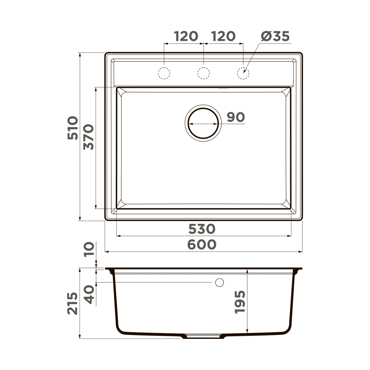 - Размер составляет 600x510 мм, глубина чаши – 195 мм.